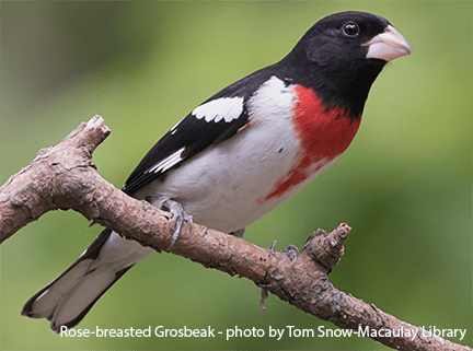 Other birds to watch for include the beautiful Rose-breasted Grosbeak, and if you’re fortunate, you may also be treated to flocks of Cedar Waxwing.